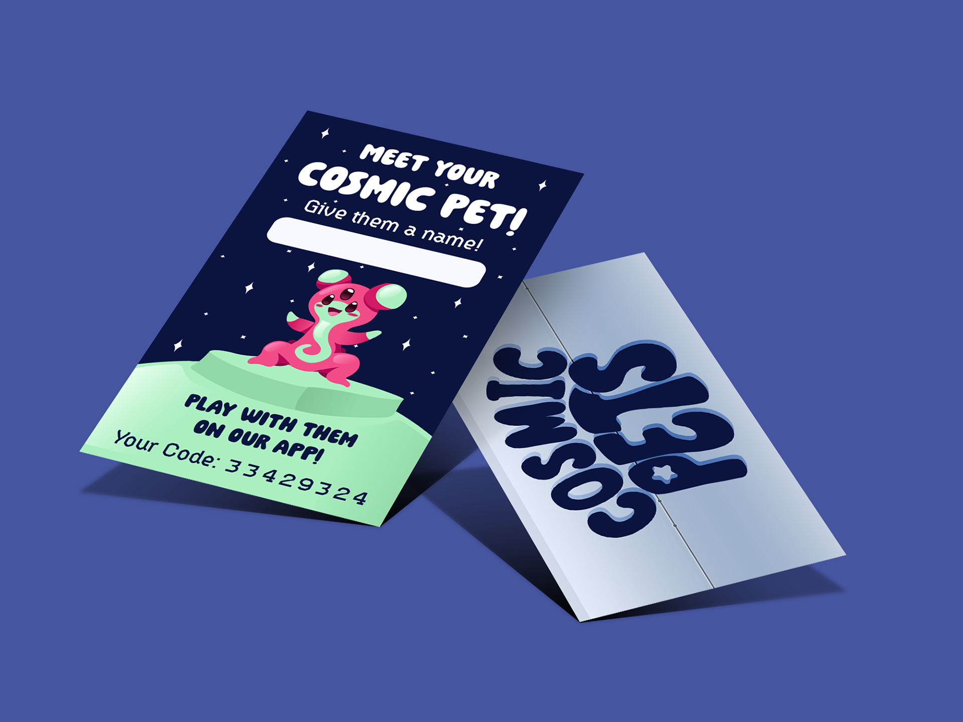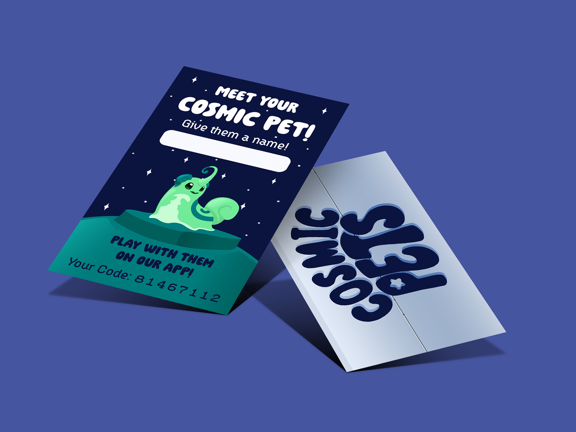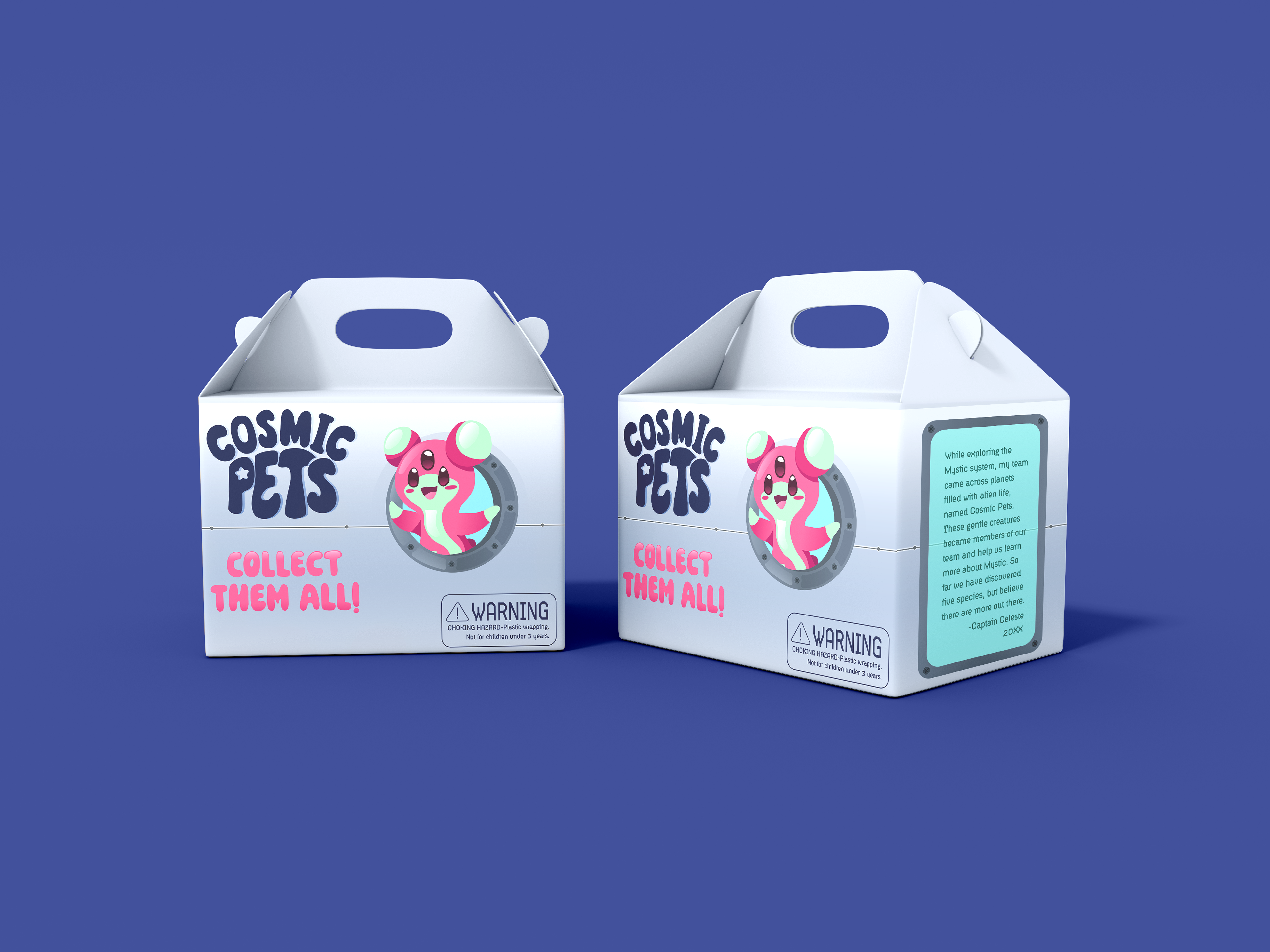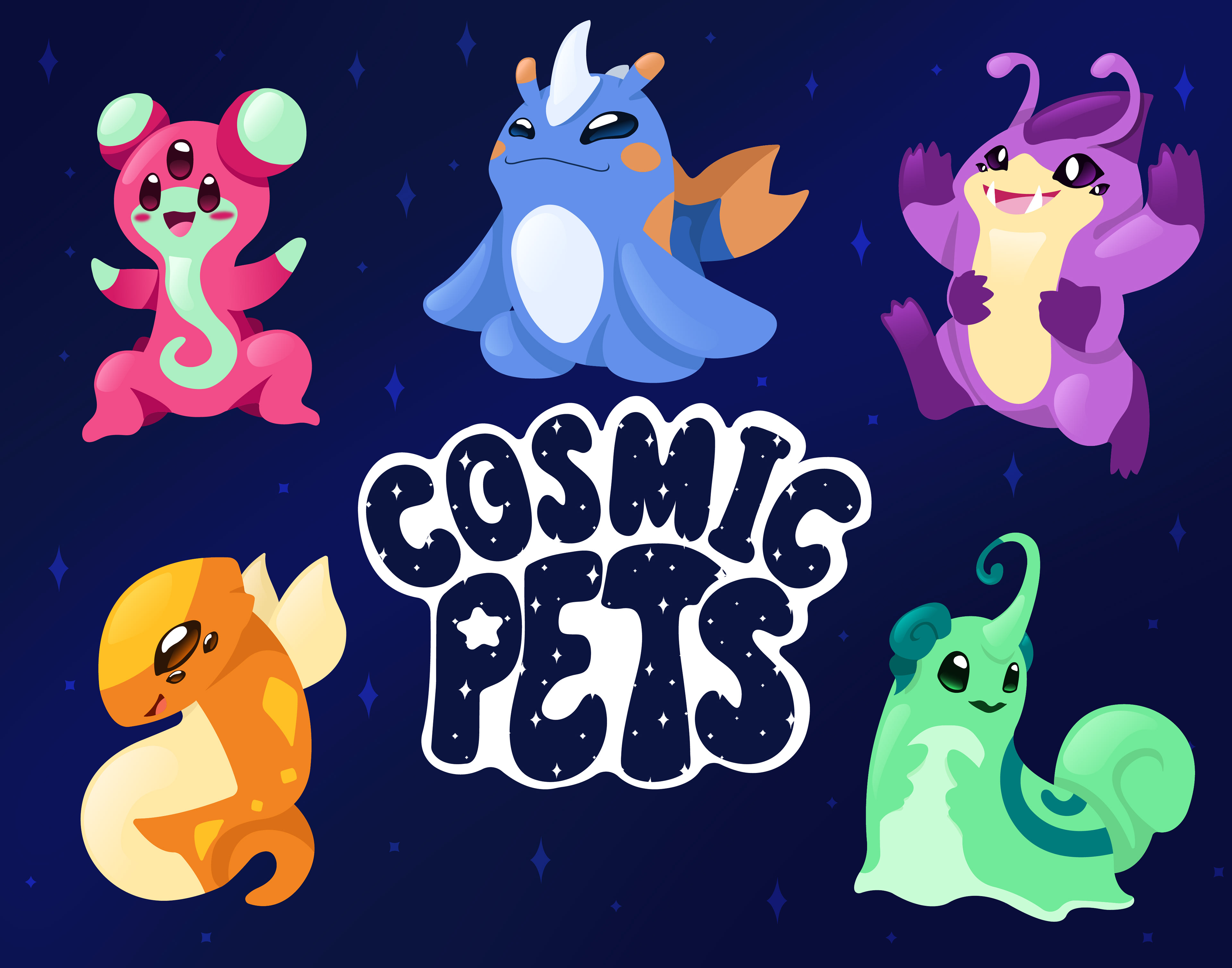 Cosmic Pets calls back to the days of Webkinz and Neopet, with surprise plushies that kids can receive with a special code. This code can be put into an app that lets kids interact with their pet. Each pet is an alien creature designed with Junichi Masuda's, a developer of Pokémon, character design philosophy of making sure they look like they can be your friend in mind.