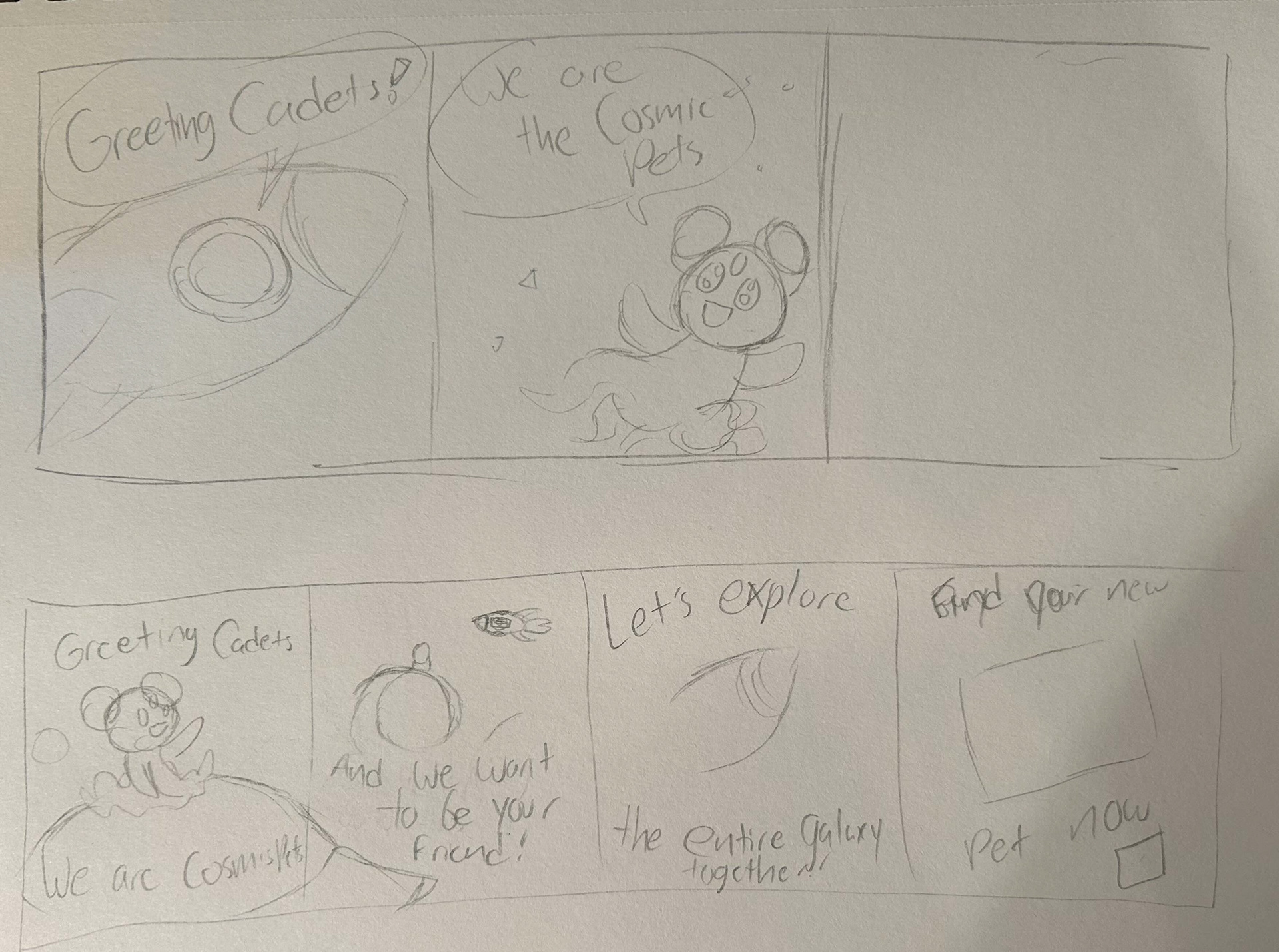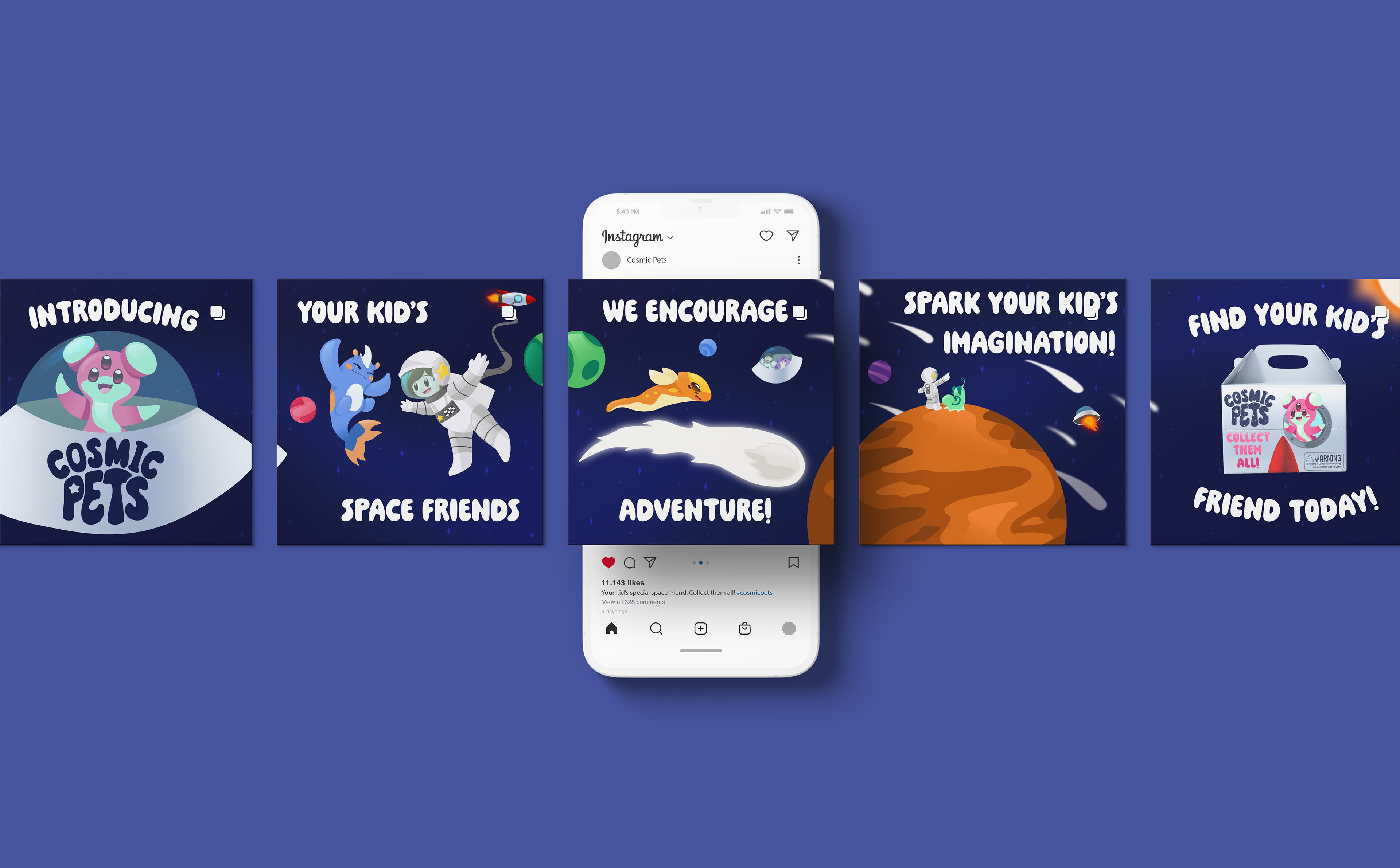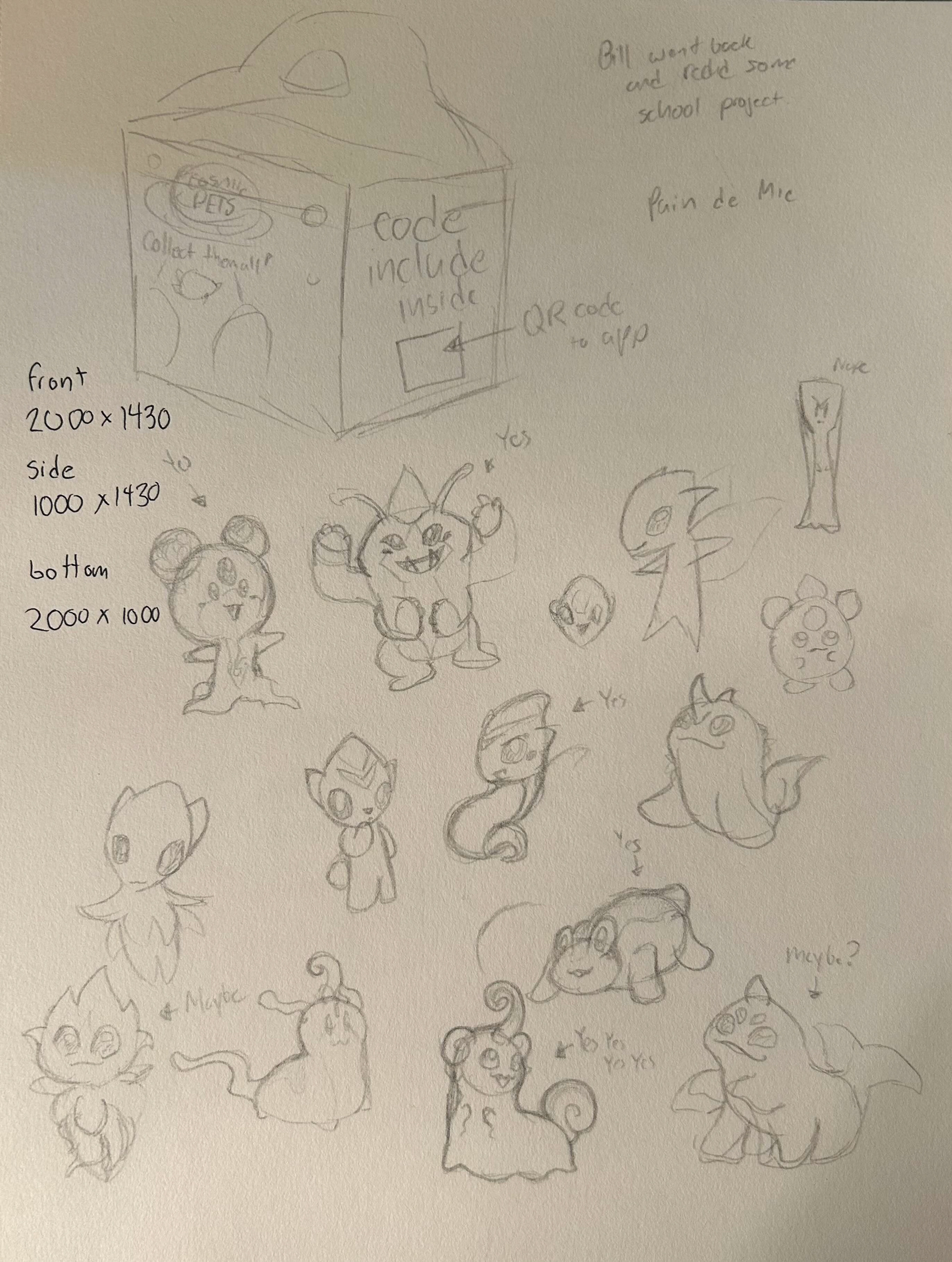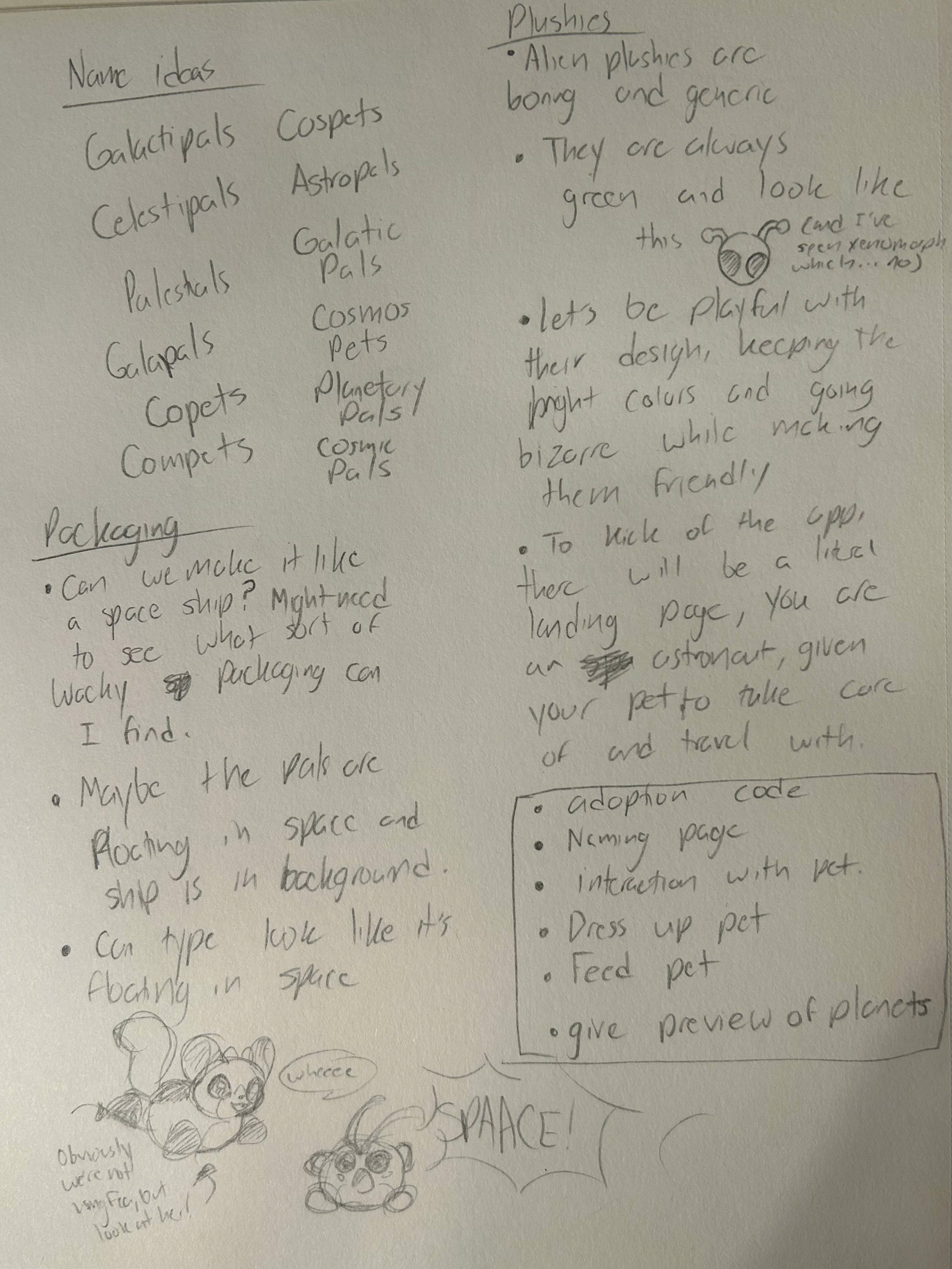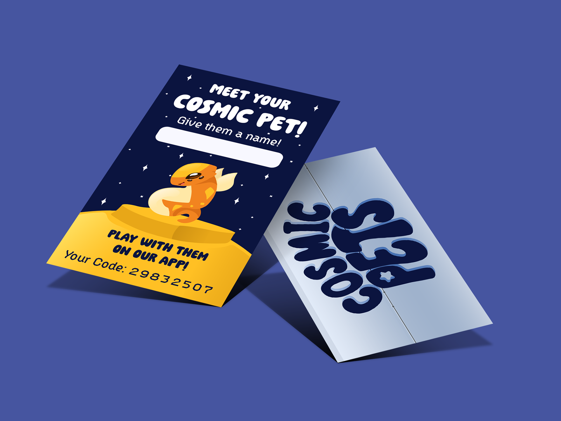 Cosmic Pets calls back to the days of Webkinz and Neopet, with surprise plushies that kids can receive with a special code. This code can be put into an app that lets kids interact with their pet. Each pet is an alien creature designed with Junichi Masuda's, a developer of Pokémon, character design philosophy of making sure they look like they can be your friend in mind.
