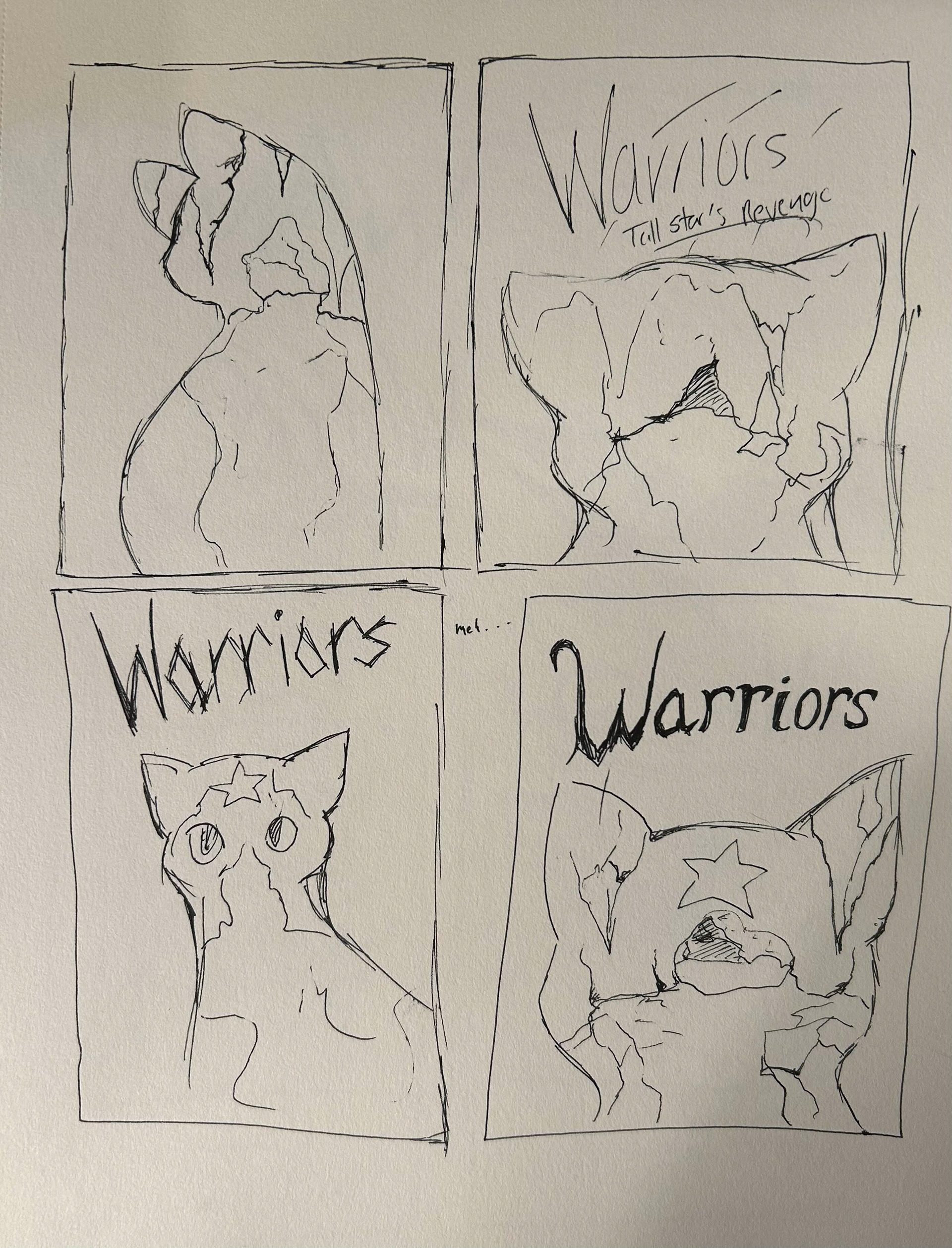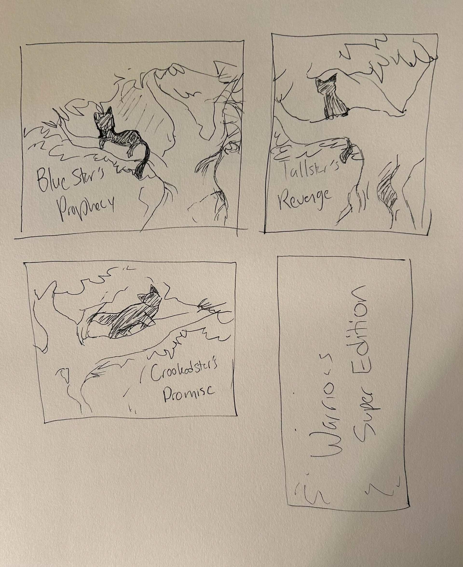 Warriors is a preteens book series written by Erin Hunter about groups of cats split into five different clans: Thunder, River, Shadow, Wind, and SkyClan. Each arc has their own thrilling plot line while the Super Editions focus on specific characters from the books like clan leaders and their origins. The book covers redesigned are Bluestar's Prophecy, Crookedstar's Promise, and Tallstar's Revenge.